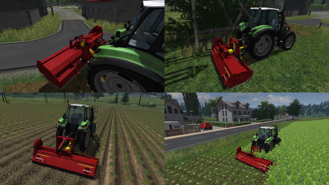 This is the first mod of our grassland pack. It is a Sauerburger 2650 flail mulcher with a working width of 3.20 meters. In addition to the mature plants barley, wheat, rape and corn, it can also mulch sugarbeet and potato leafs. If the field is not fertilized, the mulcher is undertaking that while mulching. By moving the mulcher with the mouse it can also be used to perfectly mulch roadsides.