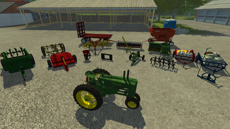 FMC Small Farm Pack This pack contains a model of a John Deere tractor and various small appliances ideal for small businesses. All devices in the package that have a 3-point hitch to implement an alternative that. Below, a trailer hitch systems for tractors, which does not use a 3-point hitch This package has no devices for root crops or forage, only standard grain. The following descriptions are also listed in the store for in-game reference. Genießen .John Deere Model A: This version has changeable wheels spokes fixed and mutable signs from the U.S. version on euro version. The farmer smokes a pipe and the 3-point hitch has been removed. Only trailer hitch points are low and high. Spinning flywheel and fan change with engine speed for added realism. Mottled gloss card emulates color fades.